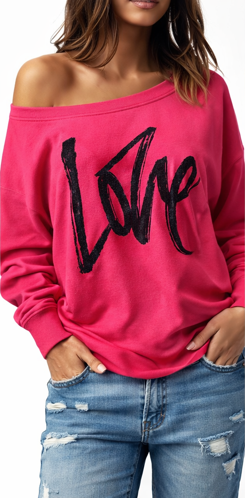 As seen on popular fashion platforms and lifestyle blogs, the Chic Off-the-Shoulder Women's Love Sweatshirt is making waves this season!